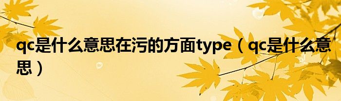 关于qc是什么意思在污的方面type,qc是什么意思这个很多人还不知道,今天菲菲来为大家解答以上的问题,现在让我们一起来看看吧!