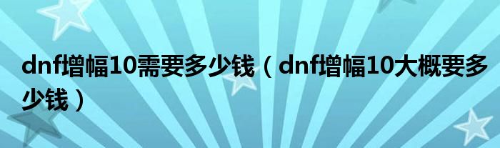 关于dnf增幅10需要多少钱,dnf增幅10大概要多少钱这个很多人还不知道,今天菲菲来为大家解答以上的问题,现在让我们一起来看看吧!