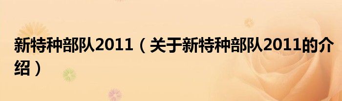大家好,今天小乐来为大家解答以上的问题。新特种部队2011,关于新特种部队2011的介绍很多人还不知道,现在让我们一起来看看吧!