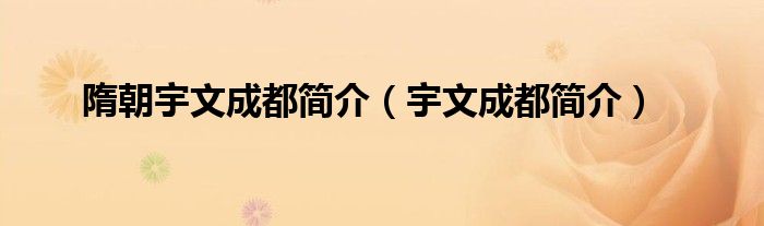 关于隋朝宇文成都简介,宇文成都简介这个很多人还不知道,今天菲菲来为大家解答以上的问题,现在让我们一起来看看吧!