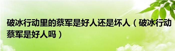 大家好,小晋来为大家解答以下问题,关于破冰行动里的蔡军是好人还是坏人,破冰行动蔡军是好人吗很多人还不知道,今天让我们一起来看看吧!