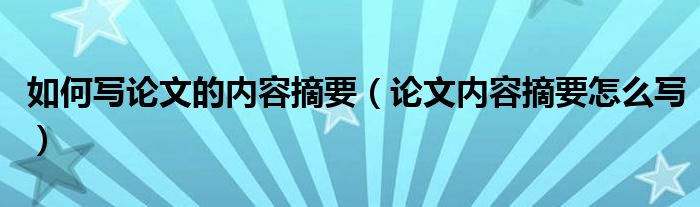 关于如何写论文的内容摘要,论文内容摘要怎么写这个很多人还不知道,今天菲菲来为大家解答以上的问题,现在让我们一起来看看吧!