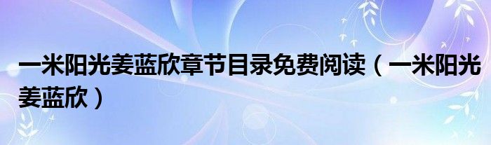 一米阳光姜蓝欣章节目录免费阅读(一米阳光姜蓝欣)