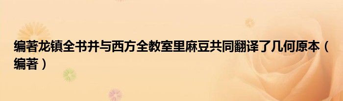 关于编著龙镇全书并与西方全教室里麻豆共同翻译了几何原本,编著这个很多人还不知道,今天菲菲来为大家解答以上的问题,现在让我们一起来看看吧!