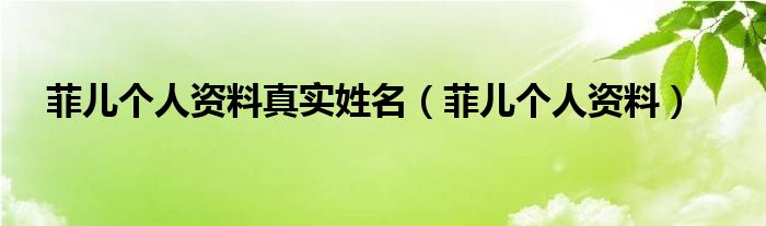 关于菲儿个人资料真实姓名,菲儿个人资料这个很多人还不知道,今天菲菲来为大家解答以上的问题,现在让我们一起来看看吧!