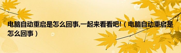 大家好,来宝来为大家解答以下问题,电脑自动重启是怎么回事,一起来看看吧!,电脑自动重启是怎么回事很多人还不知道,今天让我们一起来看看吧!