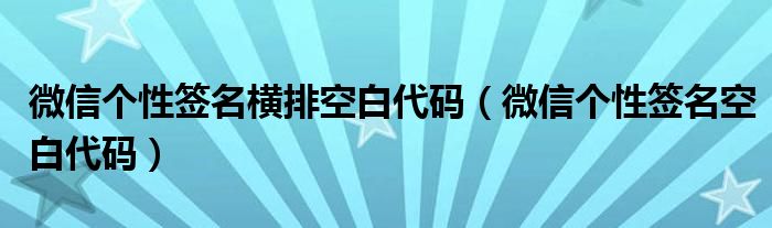 大家好,小晋来为大家解答以下问题,关于微信个性签名横排空白代码,微信个性签名空白代码很多人还不知道,今天让我们一起来看看吧!