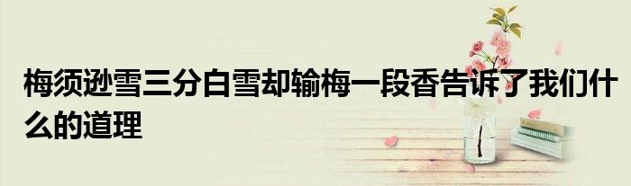 关于梅须逊雪三分白雪却输梅一段香告诉了我们什么的道理这个很多人还不知道,今天菲菲来为大家解答以上的问题,现在让我们一起来看看吧!