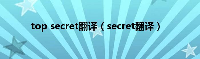 关于top secret翻译,secret翻译这个很多人还不知道,今天菲菲来为大家解答以上的问题,现在让我们一起来看看吧!