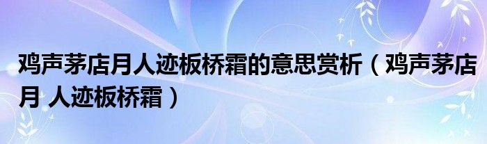 大家好,小晋来为大家解答以下问题,关于鸡声茅店月人迹板桥霜的意思赏析,鸡声茅店月 人迹板桥霜很多人还不知道,今天让我们一起来看看吧!