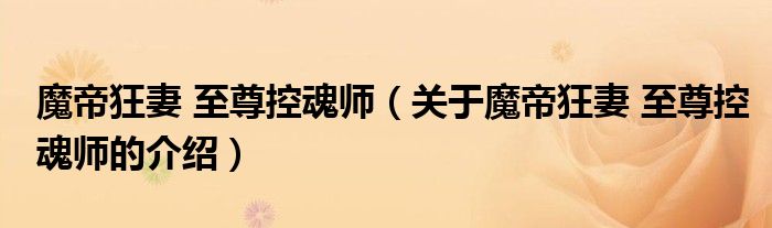 魔帝狂妻至尊控魂师(关于魔帝狂妻至尊控魂师的介绍)