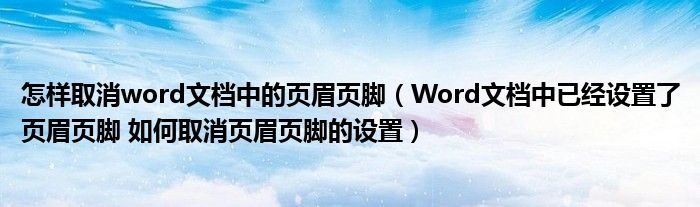 关于怎样取消word文档中的页眉页脚,Word文档中已经设置了页眉页脚 如何取消页眉页脚的设置这个很多人还不知道,今天菲菲来为大家解答以上的问题,现在让我们一起来看看吧!