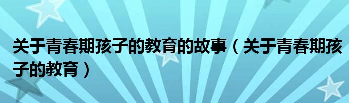 关于关于青春期孩子的教育的故事,关于青春期孩子的教育这个很多人还不知道,今天菲菲来为大家解答以上的问题,现在让我们一起来看看吧!