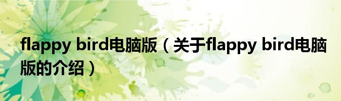 大家好,今天小乐来为大家解答以上的问题。flappy bird电脑版,关于flappy bird电脑版的介绍很多人还不知道,现在让我们一起来看看吧!
