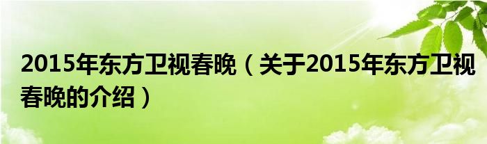大家好,今天小乐来为大家解答以上的问题。2015年东方卫视春晚,关于2015年东方卫视春晚的介绍很多人还不知道,现在让我们一起来看看吧!