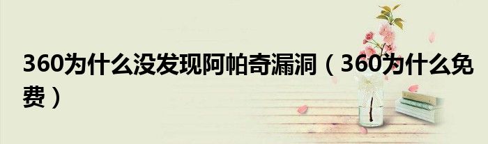 360为什么没发现阿帕奇漏洞,360为什么免费很多人还不知道,乐乐来为大家解答以上问题,现在让我们一起来看看吧!