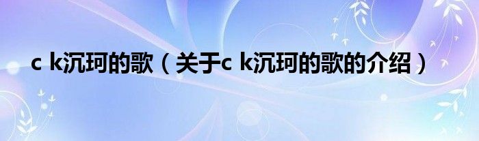 c k沉珂的歌(关于c k沉珂的歌的介绍)