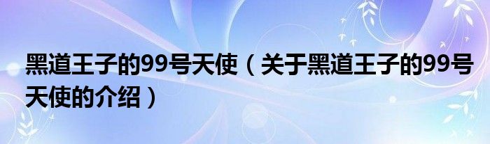 黑道王子的99号天使(关于黑道王子的99号天使的介绍)