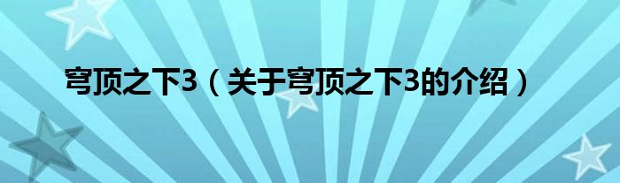 大家好,今天小乐来为大家解答以上的问题。穹顶之下3,关于穹顶之下3的介绍很多人还不知道,现在让我们一起来看看吧!