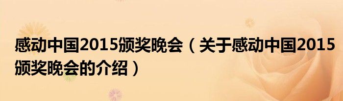 大家好,今天小乐来为大家解答以上的问题。感动中国2015颁奖晚会,关于感动中国2015颁奖晚会的介绍很多人还不知道,现在让我们一起来看看吧!