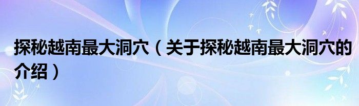 大家好,今天小乐来为大家解答以上的问题。探秘越南最大洞穴,关于探秘越南最大洞穴的介绍很多人还不知道,现在让我们一起来看看吧!