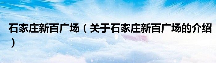 石家庄新百广场(关于石家庄新百广场的介绍)