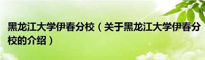 黑龙江大学伊春分校(关于黑龙江大学伊春分校的介绍)