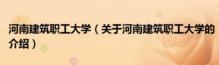 河南建筑职工大学(关于河南建筑职工大学的介绍)