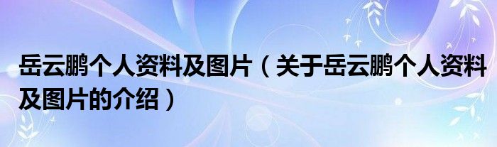 大家好,小都来为大家解答以上的问题。岳云鹏个人资料及图片,关于岳云鹏个人资料及图片的介绍很多人还不知道,现在让我们一起来看看吧!