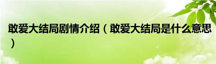 大家好,小晋来为大家解答以下问题,关于敢爱大结局剧情介绍,敢爱大结局是什么意思很多人还不知道,今天让我们一起来看看吧!