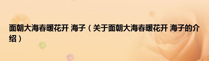 大家好,小都来为大家解答以上的问题。面朝大海春暖花开 海子,关于面朝大海春暖花开 海子的介绍很多人还不知道,现在让我们一起来看看吧!