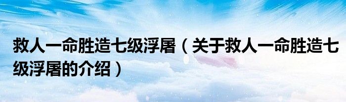 1、救人一命,胜造七级浮屠是一个汉语成语,意思是为死去的人造塔。