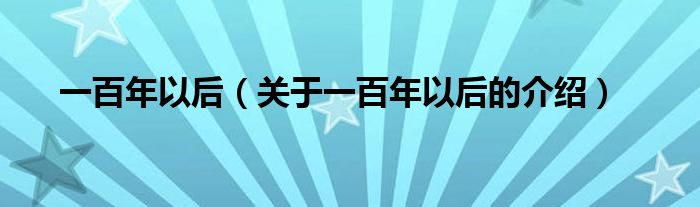 大家好,小都来为大家解答以上的问题。一百年以后,关于一百年以后的介绍很多人还不知道,现在让我们一起来看看吧!