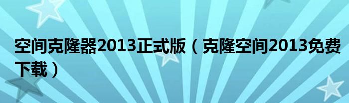 大家好,雨雨来为大家解答以上问题,空间克隆器2013正式版,克隆空间2013免费下载很多人还不知道,现在让我们一起来看看吧!