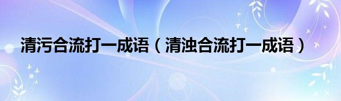 大家好,小晋来为大家解答以下问题,关于清污合流打一成语,清浊合流打一成语很多人还不知道,今天让我们一起来看看吧!