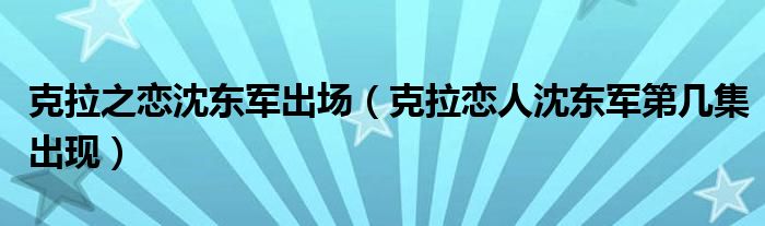 大家好,小晋来为大家解答以下问题,关于克拉之恋沈东军出场,克拉恋人沈东军第几集出现很多人还不知道,今天让我们一起来看看吧!