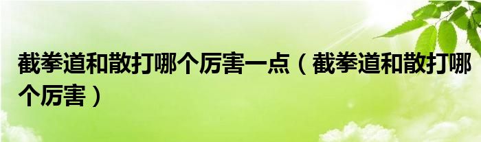 截拳道和散打哪个厉害一点(截拳道和散打哪个厉害)