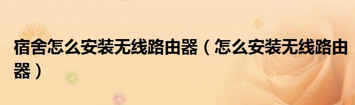 宿舍怎么安装无线路由器(怎么安装无线路由器)