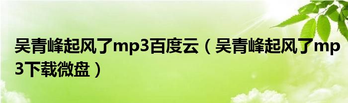 关于吴青峰起风了mp3百度云,吴青峰起风了mp3下载微盘这个很多人还不知道,今天菲菲来为大家解答以上的问题,现在让我们一起来看看吧!