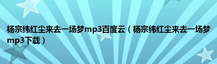 杨宗纬红尘来去一场梦mp3百度云(杨宗纬红尘来去一场梦mp3下载)