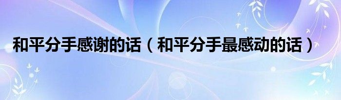 大家好,小晋来为大家解答以下问题,关于和平分手感谢的话,和平分手最感动的话很多人还不知道,今天让我们一起来看看吧!
