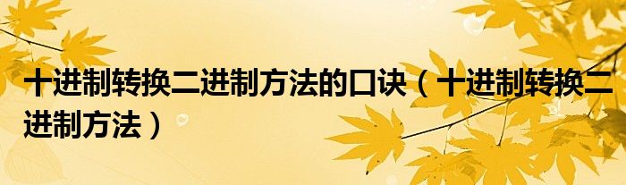 十进制转换二进制方法的口诀(十进制转换二进制方法)