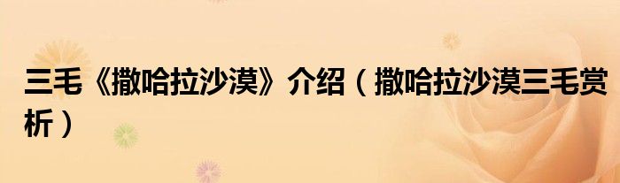 关于三毛《撒哈拉沙漠》介绍,撒哈拉沙漠三毛赏析这个很多人还不知道,今天菲菲来为大家解答以上的问题,现在让我们一起来看看吧!