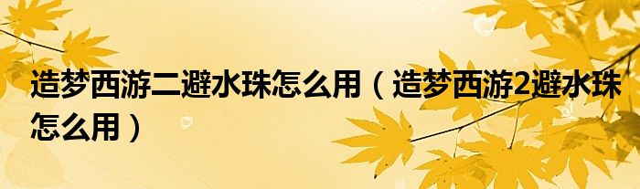 关于造梦西游二避水珠怎么用,造梦西游2避水珠怎么用这个很多人还不知道,今天菲菲来为大家解答以上的问题,现在让我们一起来看看吧!
