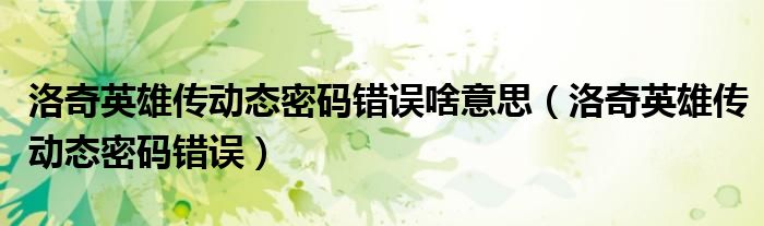 关于洛奇英雄传动态密码错误啥意思,洛奇英雄传动态密码错误这个很多人还不知道,今天菲菲来为大家解答以上的问题,现在让我们一起来看看吧!