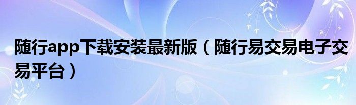 关于随行app下载安装最新版,随行易交易电子交易平台这个很多人还不知道,今天菲菲来为大家解答以上的问题,现在让我们一起来看看吧!