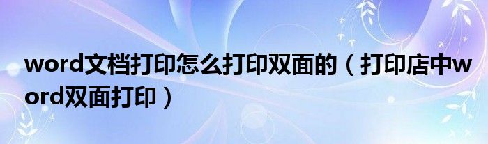 word文档打印怎么打印双面的(打印店中word双面打印)