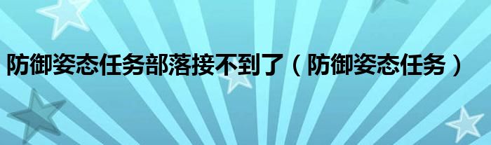 关于防御姿态任务部落接不到了,防御姿态任务这个很多人还不知道,今天菲菲来为大家解答以上的问题,现在让我们一起来看看吧!