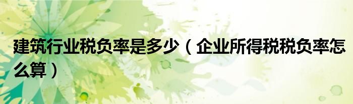关于建筑行业税负率是多少,企业所得税税负率怎么算这个很多人还不知道,今天菲菲来为大家解答以上的问题,现在让我们一起来看看吧!