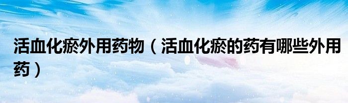 大家好,乐天来为大家解答以下的问题,活血化瘀外用药物,活血化瘀的药有哪些外用药很多人还不知道,现在让我们一起来看看吧!